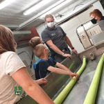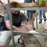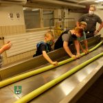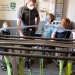 Das Thema „Schläuche“ beschäftigte die Kinderfeuerwehr auch in der letzten Gruppenstunde noch einmal. Am vergangenen Mittwoch zeigte Gerätewart Alexander Tilz den Kids neben dem Schlauchlager auch die Schlauchwasch- und pflegeanlage sowie den Schlauchtrockenturm. Letzteren konnten die Kinder zunächst von unten und, nachdem sie vom Keller aus beginnend die 122 Stufen erklommen hatten, auch von oben inspizieren.