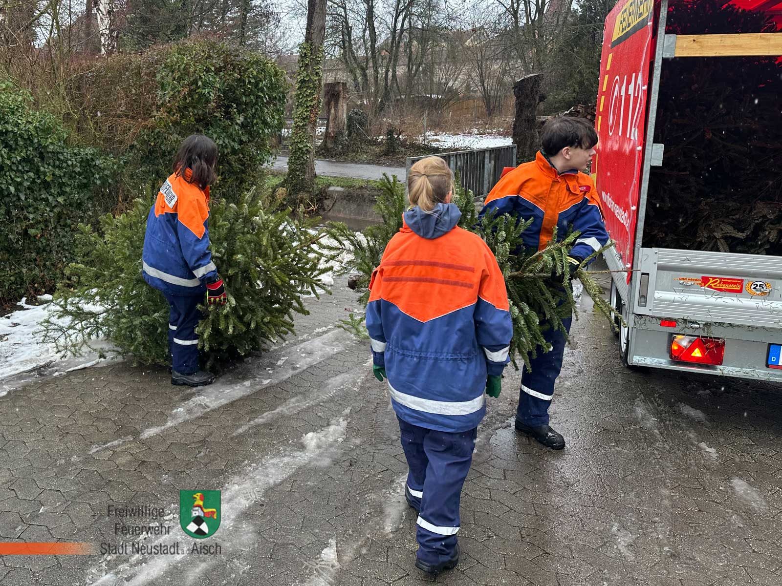 Die Sammelaktion für ausgediente Christbäume am 10. Januar 2026 wurde von den Bürgerinnen und Bürgern der Kreisstadt erneut sehr gut angenommen. Im Laufe des Samstags sammelten neun Jugendliche gemeinsam mit ihren drei Jugendwarten insgesamt 379 ehemalige Weihnachtsbäume ein – einen mehr als im Vorjahr. Unterstützt wurden sie dabei von 23 Helferinnen und Helfern, die unter anderem die fünf eingesetzten Feuerwehrfahrzeuge fuhren oder sich um die Auftragsdisposition sowie das gemeinsame Mittagessen kümmerten. Insgesamt waren die Beteiligten teils mehr als neun Stunden im „Christbaum-Einsatz“ und steuerten dabei 336 verschiedene Adressen im Stadtgebiet an. Für ihren späteren Einsatzdienst lernten die Jungen und Mädchen zahlreiche Straßen, Gassen und Ecken ihrer Heimatstadt kennen und erweiterten so ihre Ortskenntnisse.
