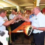 Mit leckeren Speisen vom warmen Buffet und kühlen Getränken zu seinem Ausstand verwöhnte Roland Flauger seine Feuerwehrkollegen und Gäste. Im Kreise seiner Kameraden und Freunde, darunter Kreisbrandinspektor Rüdiger Neumeister und Kreisbrandmeister a. D. Roland Zeilinger, genoss der Jubilar noch einige Stunden – und „gestand“ dem Verfasser später: „Genau so habe ich es mir vorgestellt.“
