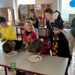 In der Küche wurde es danach beim „Clown-Experiment“ sehr interessant und lustig, denn je nach Mischungsverhältnis der Zutaten des Experimentes bekam „der Clown“ bunte „Haare“ und das in den unterschiedlichsten Farben.