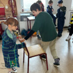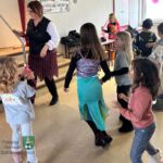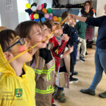 Verschiedene kurzweilige Spiele ließen die Gruppenstunde für die 17 Kinder wie im Fluge vergehen. Die Jungs und Mädchen vergnügten sich beim Schokokusswettessen, beim Abknabbern von aufgefädelten Brezeln (jeweils ohne Einsatz ihrer Hände), bei einem Verkleidungswettrennen sowie dem Stopptanz und spielten „Reise nach Jerusalem“.