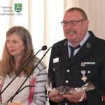 Roland Flauger freute sich in seiner kurzen Ansprache besonders über die Anwesenheit des Neustädter Ehrenkommandanten Gerhard Dollinger, unter dessen Führung er seinerzeit mit seinem Feuerwehrdienst begonnen hatte. Bei seiner Frau Gabi bedankte er sich besonders für ihre jahrzehntelange Unterstützung und an seine jungen Kameraden richtete er den Appell, fortzusetzen, was er angefangen hat, denn (Wortlaut von Roland): „Ohne Feuerwehr … gibt’s nicht!“