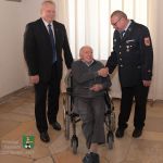 Kreisbrandrat Tilz und stellvertretender Landrat Schnizlein freuten sich, zum ersten Mal im Landkreis das „Große Feuerwehr-Ehrenzeichen“ für eine 50-jährige aktive Dienstzeit bei einer Freiwilligen Feuerwehr verleihen zu dürfen – an Löschmeister Roland Flauger, der seit der Gründung der Jugendgruppe der Feuerwehr Neustadt im Jahre 1969 bis zu seinem 65. Geburtstag im September 2019 ununterbrochen ehrenamtlichen Feuerwehrdienst leistete und am Abend vor den Ehrungen offiziell aus dem aktiven Dienst verabschiedet wurde.