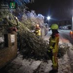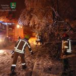 Beginnend mit einem Alarm um 20:30 Uhr, Einsatzmeldung „Baum hängt schräg über die Straße“, rückte die Feuerwehr Neustadt in den folgenden Stunden zu insgesamt 7 Einsatzstellen in der Kernstadt, einer Einsatzstelle im Ortsteil Schellert und zu einem Unterstützungseinsatz für die Feuerwehr Markt Erlbach aus. In allen Fällen handelte es sich um Schneebruch-Einsätze, bei denen Bäume oder Teile davon abgebrochen waren oder sich gefährlich geneigt hatten und Straßen blockierten. Mit dem Einsatz von Motorkettensägen beseitigten die Feuerwehrleute die Bäume und räumten die Äste und Stammstücke von den betroffenen Fahrbahnabschnitten.