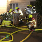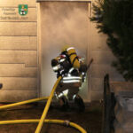 Der Fokus der Einsatzübung lag im Bereich „Suchen und Retten“ im Atemschutzeinsatz. Insgesamt drei Trupps (jeweils zwei Feuerwehrleute), ausgerüstet mit schwerem Atemschutz, gingen zur Personensuche in das Gebäude vor, davon zwei Trupps mit „Wasser am Rohr“. Ein weiterer Atemschutztrupp stand als sogenannter Sicherheitstrupp während des Atemschutzeinsatzes vor dem Objekt bereit. Die Vermissten (drei Übungspuppen) konnten schnell gefunden und gerettet werden. In einem Fall erfolgte dies aus dem Obergeschoss über den Rettungskorb der Drehleiter. Im Zuge der Personensuche wurde auch ein akkubetriebener Hochleistungslüfter zum Einsatz gebracht. Damit gelang es rasch, den Brandrauch (simuliert mit einer Nebelmaschine) aus dem Haus zu bekommen und so die Sicht für die vorgehenden Trupps deutlich zu verbessern. Nachdem in der Übungsannahme keine konkrete Information über die exakte Anzahl vermisster Personen enthalten war, suchten die Atemschutztrupps das Haus noch komplett ab – mit dem Ergebnis, dass es bei drei „Geretteten“ blieb.