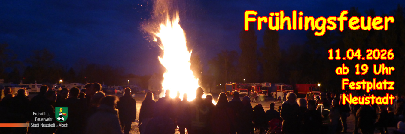 Die Feuerwehr Neustadt lädt Groß und Klein zum 13. Frühlingsfeuer am Samstag, 11. April 2026, ab 19:00 Uhr, auf dem Neustädter Festplatz (Bei den Sommerkellern) ein.