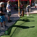 Nach dem Empfang der persönlichen Schläger und Bälle wurden die jungen Feuerwehrleute in zwei Gruppen aufgeteilt, um so die Anlage parallel zu nutzen. Schnell zeigte sich, dass unter den Kindern wahre Könner sind. So konnte auf etlichen Bahnen der Golfball mit drei Schlägen „eingelocht“ werden. Selbst die absoluten Neulinge, die erstmals einen Minigolf-Schläger in Händen hielten, hatten riesigen Spaß – am Spiel selbst und in der Gruppe. Das Hauptproblem war, wie bei fast allen Gruppenstunden, die Zeit. Trotz großem Engagement und Zielstrebigkeit schafften die Mädchen und Jungs nicht alle Bahnen, denn auf das „Sieger-Eis“ zum Abschluss – für alle natürlich – wollte niemand verzichten. Irgendwie verständlich.