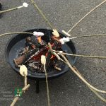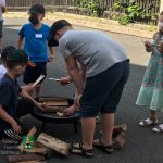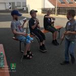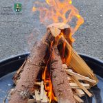 Im zweiten Teil der Gruppenstunde ging es dann richtig heiß her: Es wurden zwei Feuerschalen bestückt und entzündet – natürlich mit entsprechenden Erläuterungen hinsichtlich der aktuellen Gefahr von Wald- und Flächenbränden und wie diese entstehen können. Nachdem die beiden Feuer entzündet waren, zeigte sich, dass es sehr wohl darauf ankommt, wie man das Holz und die Anzündhilfen positioniert. Schlussendlich nutzten die Kids das optimalere Feuer, um ihre Würstchen, das Stockbrot oder die Marshmallows am Stecken zu brutzeln.