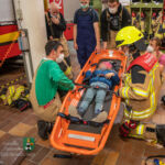 Im Anschluss starteten Feuerwehrleute noch einen Versuch: Die 5-jährige Helena „spielte“ ein weiteres Opfer und die Übungsteilnehmer mussten, wie im Feuerwehrdienst sooft, improvisieren, denn die erwähnte Schleifkorbtrage ist vom Grundsatz für den Transport von Erwachsenen gedacht und auch konzipiert. Doch Dank des geduldigen Opfers konnte probiert, getestet und eine Lösung gefunden werden.