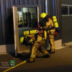 Im Übungseinsatz waren 36 Feuerwehrfrauen und -männer. Das Fahrzeugaufgebot für diese Objektübung war immens: Es bestand aus Kommandowagen, drei Löschgruppenfahrzeugen, Drehleiter und Tanklöschfahrzeug (TLF) sowie Mehrzweckfahrzeug. Im Rahmen der Übungsvorbereitung wurde eine Nebelmaschine in Stellung gebracht und eine Übungspuppe, die als zu rettende Person fungierte, auf einem Gabelstapler drapiert.