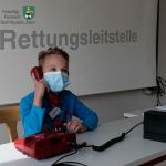 Zeitgleich behandelte die zweite Gruppe mit den Betreuer-Team Katharina und Johann das Thema Notruf. Hier zeigte sich, dass viele von ihnen bereits positiv vorbelastet sind, denn diese Materie war schon in der Schule behandelt worden. Theoretisch. So wussten die Mädchen und Jungs um die „5 W’s“ Bescheid und waren kaum zu bremsen, als die Notruf-Übungsanlage in Betrieb genommen wurde. Jeweils eines der Kinder besetzte das „rote Telefon“ der fiktiven Rettungsleitstelle und ein anderes Kind begab sich in den Nebenraum, bekam ein Foto eines Brand- oder Unfallereignisses gezeigt und musste anhand der erkannten Situation den Notruf an die Leitstelle melden.