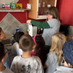 Beim Experiment „zauberten“ die Kinder mit ihren Betreuerinnen ein Ei in eine Glasflasche – und auch wieder heraus! Dazu haben sie ein gekochtes und geschältes Ei auf die Öffnung einer vorher erwärmten Flasche gesetzt. Dann wurde die Flasche unter kaltes Wasser gehalten. Nach kurzer Zeit flutschte das Ei in die Flasche – aufgrund des beim Abkühlen im Inneren entstehenden Unterdruckes.