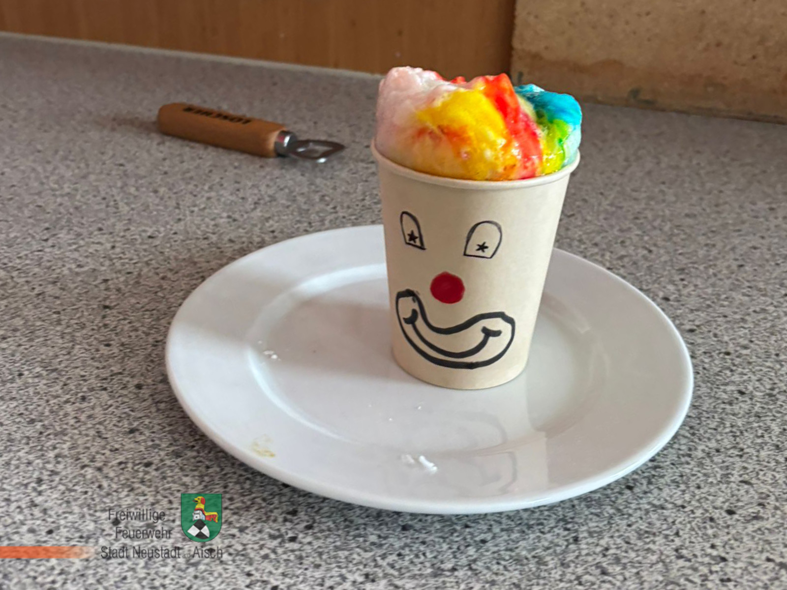 In der Küche wurde es danach beim „Clown-Experiment“ sehr interessant und lustig, denn je nach Mischungsverhältnis der Zutaten des Experimentes bekam „der Clown“ bunte „Haare“ und das in den unterschiedlichsten Farben.