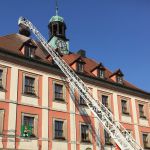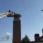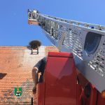 Kurz vor dem Pfingstfest begann die Beringung der Jungstörche im Aischgrund. Wie in vielen vorangegangenen Jahren war die Feuerwehr Neustadt auch 2019 gerne unterstützend tätig.