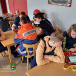 Die weiteren Übungsteile fanden in der Fahrzeughalle statt, beginnend mit dem Zeigen und Erläutern der umfangreichen Ausrüstung eines AGT. Im Mannschaftsraum des Hilfeleistungs-Löschgruppenfahrzeugs erhielten die Jugendlichen nützliche Tipps, wie sie einen Atemschutzgeräteträger beim Ausrüsten im Fahrzeug unterstützen können – nützliche Tipps für ihren späteren Einsatzeinsatz und bereits jetzt für die 16- und 17-Jährigen unter ihnen, die mit ausrücken dürfen.