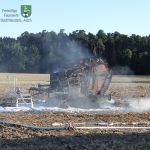 Vor Ort war folgende Lage gegeben: Ein abgeerntetes Getreidefeld, an ein ausgedehntes Waldstück direkt angrenzend, stand in Flammen. Ein auf diesem Areal tätiger Landwirt bemerkte, dass die Strohballenpresse an seinem Traktor Feuer gefangen hatte. Er konnte die brennende Strohpresse zwar auf ein benachbartes, bereits gepflügtes Feld ziehen, doch den Brand des Stoppelfelds konnte er nicht mehr verhindern.