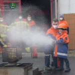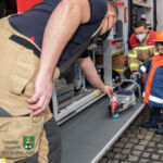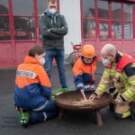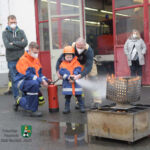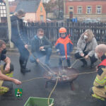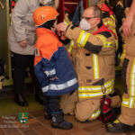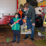 Zunächst, weil ja Valentin zu uns, zur Feuerwehr Neustadt, gehören sollte, bekam er die kleinste Uniformjacke der Jugendfeuerwehr und einen passenden Helm. Schließlich wurde „Kamerad Valentin“ sofort von allen akzeptiert und in die Feuerwehrreihen aufgenommen. Im Anschluss überschlugen sich für den kleinen Besucher die Ereignisse: Fahrzeugbesichtigung, Probesitzen im Löschfahrzeug, Dosenquetschen mit dem Rettungsspreizer, Begutachten der Einsatzuniform und eines Atemschutzgeräteträgers, Feuerlöschereinsatz an der Übungslöschanlage, Löscheinsatz am Brandhaus, Feuerschale bestücken und anzünden. Ohne Hemmungen ließen sich Valentin und sein Papa von Feuerwehrmann Julian im Korb der Drehleiter in die Höhe fahren und genossen einen kurzen Rundblick über Neustadt. Zum Abschluss begaben sich alle wieder an die Feuerschale, denn es warteten die geschnitzten Stecken und die Würstchen! Nach dem gemeinsamen Grillen mussten wir nach intensiven 90-Feuerwehr-Minuten „unseren Valentin“ verabschieden. Doch er ging nicht mit leeren Händen. Er bekam u. a. ein Feuerwehr-Shirt der Jugendgruppe, einen großen Feuerwehrkalender, Feuerwehr-Lineale und ein ausgemustertes Strahlrohr. Doch es sollte noch der Höhepunkt kommen: Valentin samt Papa wurden von Feuerwehrmann Jörg im Tanklöschfahrzeug ein Stück nach Hause gefahren – sogar mit Einsatzhorn und Blaulicht!