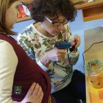 Zusammen mit ihren Betreuerinnen griffen die Kinder zu Heißklebepistolen und kleinen Spinnenfiguren und verwandelten damit handelsübliche Vorratsgläser äußerst kreativ in gruselige Leuchtobjekte. Damit werden am Halloween-Abend mit Sicherheit alle Geister ferngehalten!