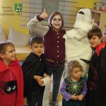 Die „Pflicht“ zur Halloween-Verkleidung war dabei zu jeder Zeit erfüllt. Manches Kind „verwandelte“ sich im Laufe der Gruppenstunde sogar zu einer Mumie. Am Schluss gab es noch das für Halloween obligatorische „Süße“, ehe die Jungs und Mädchen fröhlich nach Haus geisterten.