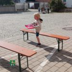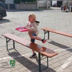Teamarbeit zu zweit war an Station 2 gefragt. Es galt, einen Tischtennisball so rasch wie möglich durch einen C-Druckschlauch zu bugsieren. Ein Hindernisparcours bildete die dritte Station. Die Jungs und Mädchen bekamen nacheinander ein Tablett, auf dem fünf mit Wasser gefüllte Becher standen. Damit sollten sie Geschicklichkeit beweisen und möglichst schnell durch einen Slalom durch drei Verkehrsleitkegel und anschließend über zwei Bänke balancieren, ehe am Ende des Parcours ein Ball wegzukicken war – ohne das während des Durchlaufs ein Becher umfiel.