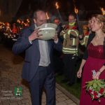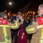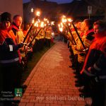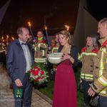 Nach dem hochoffiziellen Teil staunte das Brautpaar nicht schlecht: Der Fußweg vor dem „Kolb-Anwesen“ war romantisch illuminiert und 34 Kameradinnen und Kameraden der Feuerwehr standen zu Ehren des frisch vermählten Paares Spalier.