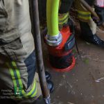 Vor Ort stellten die Einsatzkräfte fest, dass das komplette Kellergeschoss eines Wohnhauses bis zu 15 cm hoch unter Wasser stand. Die Feuerwehrleute brachten zum Lenzen des Kellers eine Tauchpumpe und zwei sogenannte Nassgutsauger (Feuerwehrjargon für Industriesauger) zum Einsatz und beseitigen damit das Wasser bis auf „Putzlappen-Niveau“.