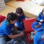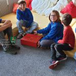 Die Betreuerinnen hatten sich dazu ein Quiz ausgedacht, bei dem die Kinder Antworten auf verschiedenen Feuerwehrfragen finden mussten. Ein aus den Lösungen resultierendes Hinweiswort verriet ihnen in der Parkanlage den richtigen Weg – den Weg zum Schatz! Es dauerte nicht lange, ehe der Feuerwehrnachwuchs im „Sperberspark“ (so nennen die Neustädter die Anlage) am Ziel waren und ihren Schatz gehoben hatten. In der feuerroten Schatzkiste warteten kleine (und auch süße) Überraschungen auf ihre Finder. Ein belohnender Abschluss nach viel Spiel, Spaß und Bewegung an der frischen Luft!