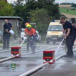 Nach dem Frühstück am Samstagmorgen galt es, den ersten Teil der Feuerwehrolympiade in Angriff zu nehmen. Hier mussten Geschicklichkeit beim Stapeln (horizontal!) von Kanistern, Präzision beim Schlauchausrollen und Leinenbeutelwerfen sowie kognitive Fähigkeiten beim Feuerwehrmemory bewiesen werden. Am Nachmittag folgte der zweite Teil der Olympiade, bei dem sowohl die Jugendlichen als auch die Betreuer gefordert waren. Während einer der Betreuer seine Genauigkeit beim Betreuerspiel demonstrieren musste, wurde die Teamarbeit unter den Jugendlichen beim Schlauchbootfahren geprüft. Bei einem Spiel war dieses Jahr die Neuheit, dass die Mädchen und Jungs einem Betreuer für einen erfolgreichen Abschluss zuzuarbeiten hatten. Nach der – erfolgreichen – Erledigung der Aufgaben ließen die Teilnehmer den Abend beim Volleyball- und Fußballspielen mit ihren Kameraden der anderen Wehren am Zeltplatz ausklingen.