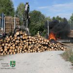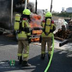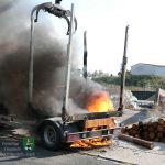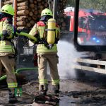 An der Einsatzstelle zeigte sich folgende Lage: Der rechte Hinterreifen des Anhängers eines mit Baumstämmen beladenen Lastzugs hatte Feuer gefangen. Die Flammen hatten das Ladegut schon erreicht. Durch die FF Neustadt kam ein Trupp unter schwerem Atemschutz mit einem C-Hohlstrahlrohr zum Einsatz. Parallel hierzu lud der Fahrer mit dem Lkw-Kran das Rundholz ab und lagerte es außerhalb des Gefahrenbereiches. Für die Dauer der Löschmaßnahmen sperrten Einsatzkräfte der Feuerwehr den betroffenen Straßenabschnitt. Vor Verlassen der Einsatzstelle erfolgte noch die Reinigung der Straße, um so die Verkehrssicherheit wieder sicherzustellen.