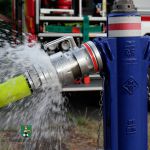 Zum Schluss blieb noch Zeit für einen „Wasserwerfer-Systemtrenner-Test“ (Bild), der seine Funktionsweise deutlich visualisierte: Bei einem „Rückfluss“ von Löschwasser leitet der Systemtrenner dieses aus dem Leitungssystem ins Freie ab. Das Eindringen von Löschwasser ins Trinkwasser-Leitungssystem ist somit unterbunden.