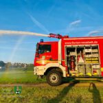 Hierzu „rückten“ die Feuerwehrleute mit dem Löschgruppenfahrzeug LF 20 KatS und dem Tanklöschfahrzeug (TLF 4000) aus. Das TLF verfügt über einen fest verbauten Dachmonitor sowie einen mobilen Wasserwerfer.