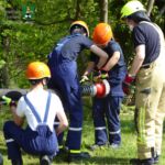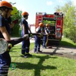 Im zweiten Abschnitt der Übung befassten sich die Jugendlichen mit dem sogenannten Löschaufbau (Löschangriff). Vom Setzen des Verteilers, dem Verlegen der Druckschläuche bis hin zur Vornahme des ersten, zweiten sowie dritten C-Strahlrohres beherrschten die Jugendlichen stets „ihr Handwerk“.