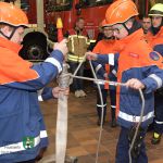 Nach intensiver Vorbereitung durch die Jugendwarte Andreas Meyer und Dieter Schneider konnten die acht Jungs und drei Mädchen am Freitagabend beweisen, dass sie „ihr Feuerwehrhandwerk“ beherrschen und verstehen. Das Schiedsrichterteam, bestehend aus Kreisbrandrat (KBR) Alfred Tilz, Kreisbrandinspektor (KBI) Dieter Popp, Kreisbrandmeister (KBM) Jugend Stefan Fleischmann und der stellvertretenden Bezirksjugendsprecherin Janina Pfleger (Feuerwehr Scheinfeld), begutachtete genau die regelkonforme Durchführung der verschiedenen Einzel- und Truppaufgaben. Neben dem zielsicheren Ausrollen eines C-Druckschlauches, dem raschen Kuppeln von Saugschläuchen und dem Zielspritzen mit dem Kleinlöschgerät, im Volksmund: Kübelspritze, mussten die Teilnehmer unter anderem beweisen, dass sie wichtige Knoten und Stiche zuverlässig meistern. Auch eine schriftliche Wissensabfrage zählte zum Prüfungsumfang. Nach knapp eineinhalb Stunden Gesamtprüfungsdauer nahmen die glücklichen Feuerwehranwärter stolz die Leistungsabzeichen aus den Händen von KBR Tilz, KBI Popp und KBM Fleischmann entgegen.