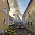 In Diespeck war eine Scheune in Brand geraten. Seitens der Neustädter Feuerwehr erfolgte die Brandbekämpfung zum einen vom Rettungskorb der Drehleiter aus. Die Mannschaft des Löschgruppenfahrzeugs nahm zwei C-Strahlrohre vor. Im weiteren Verlauf wurden vom Drehleiterkorb aus Nachlöscharbeiten durchgeführt.