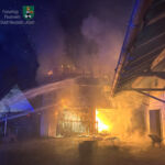 Die Neustädter Einsatzkräfte konnten unmittelbar nach dem Alarm abrücken, nachdem sie sich zu diesem Zeitpunkt noch mitten in ihrer Jahreshauptversammlung befanden. An der Einsatzstelle in dem Gutenstettener Ortsteil fanden sie folgende Lage vor: Der Anbau einer Maschinenhalle stand in Vollbrand.