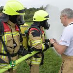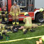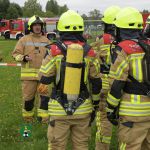 Anschließend wurden mit Absperrbändern drei Brandräume angedeutet, in welche die Atemschutzgeräteträger in voller Montur vordringen sollten. Dort angekommen, erhielten sie von Torsten Bodensiek Befehle beziehungsweise Lagemeldungen, auf die sie sofort und richtig reagieren mussten.