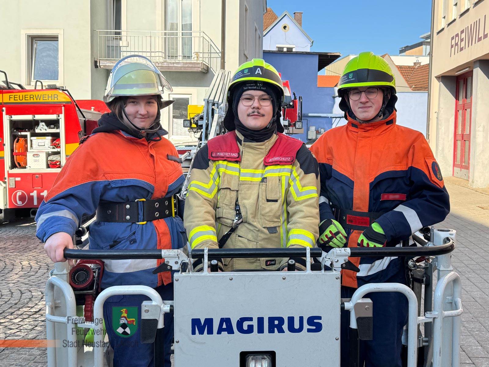 Die Jugendlichen übten mit ihren Jugendwarten zunächst den Umgang mit dem Spineboard und der Schleifkorbtrage sowie deren Einsatzmöglichkeiten. Der Höhepunkt der Übung war zweifelsohne die Drehleiter: Erst erläuterte Feuerwehrmann Uwe Machetanz den Jungs und Mädchen das Fahrzeug und seine besonderen Anwendungsoptionen, ehe sie gemeinsam mit den Jugendwarten im Rettungskorb hoch hinausfahren und „eine Runde über die Dächer Neustadts drehen“ durften.