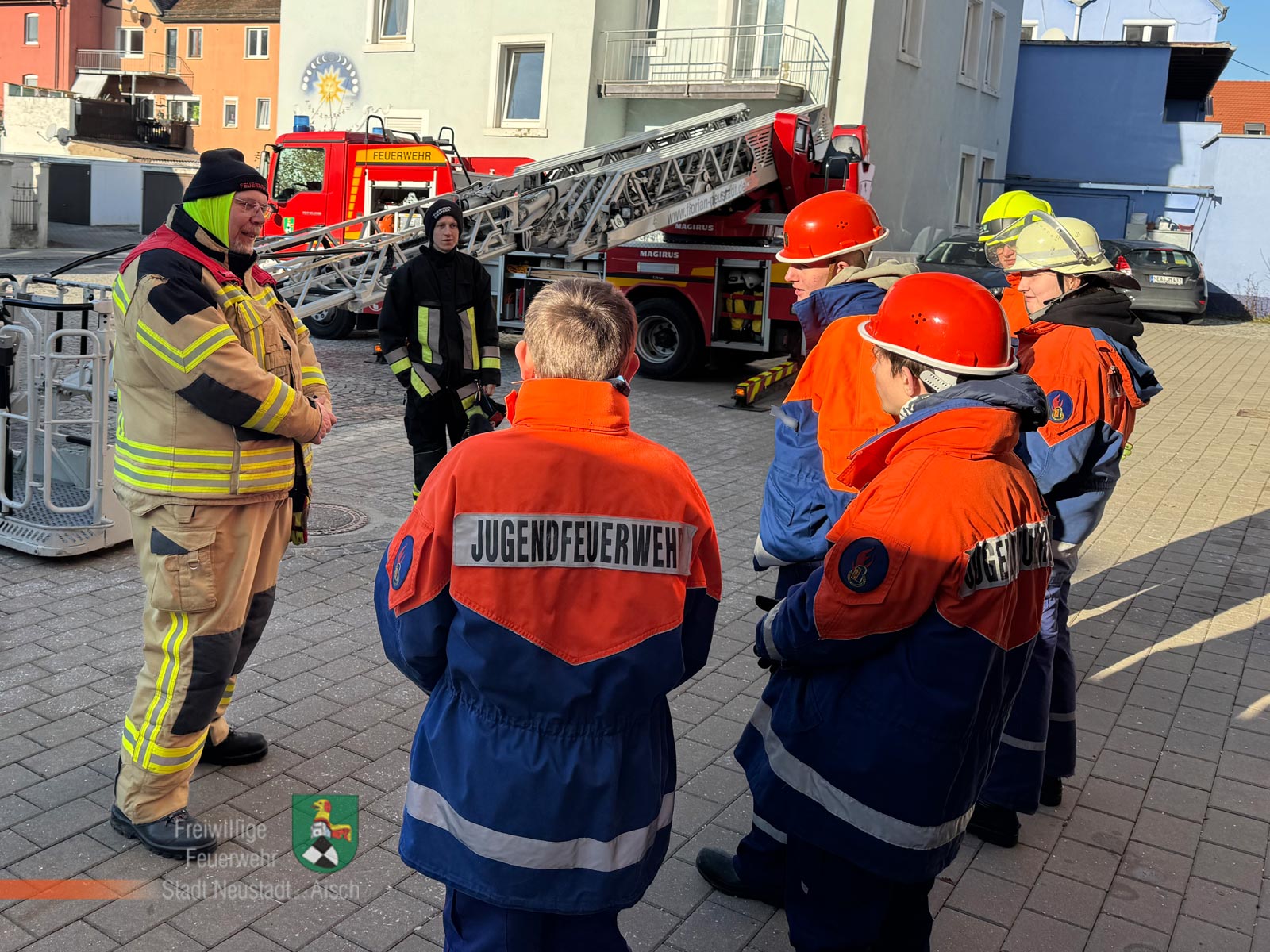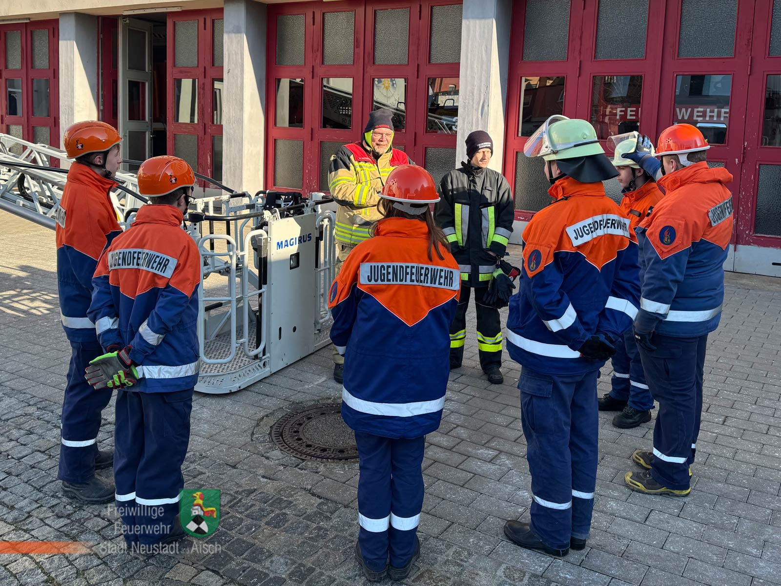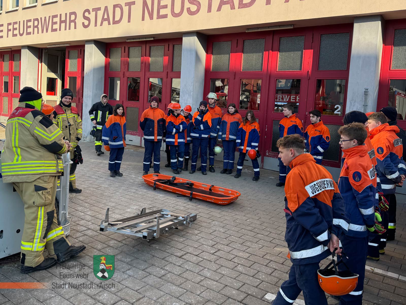 Neustadt – Am 22. November 2025 führte die Neustädter Jugendfeuerwehr eine gemeinsame Übung mit der Jugendgruppe der Feuerwehr Diespeck durch. Insgesamt 18 Jugendliche trafen sich am Samstagmorgen bei sehr winterlichen Temperaturen am Feuerwehrgerätehaus in Neustadt an der Aisch.