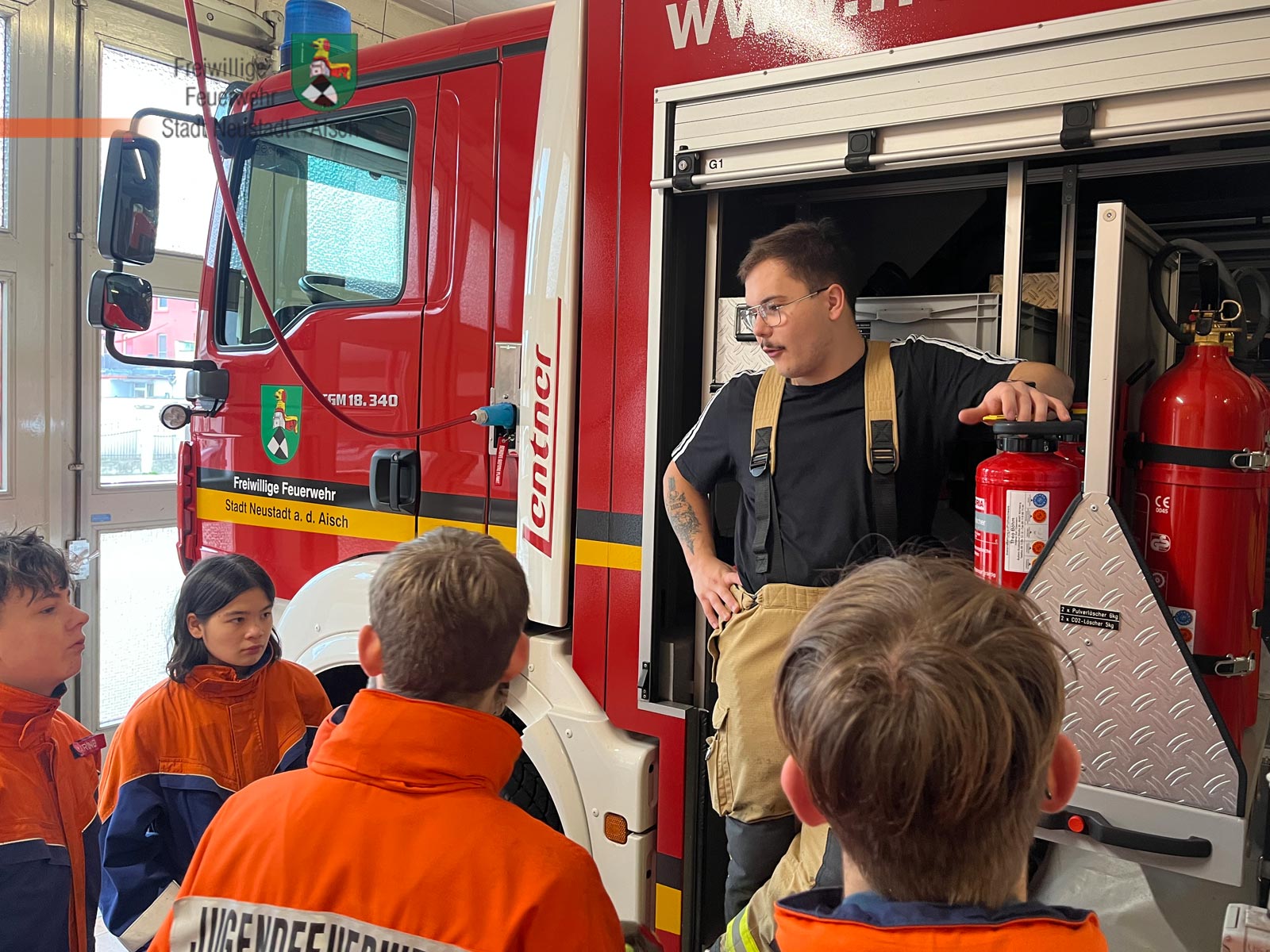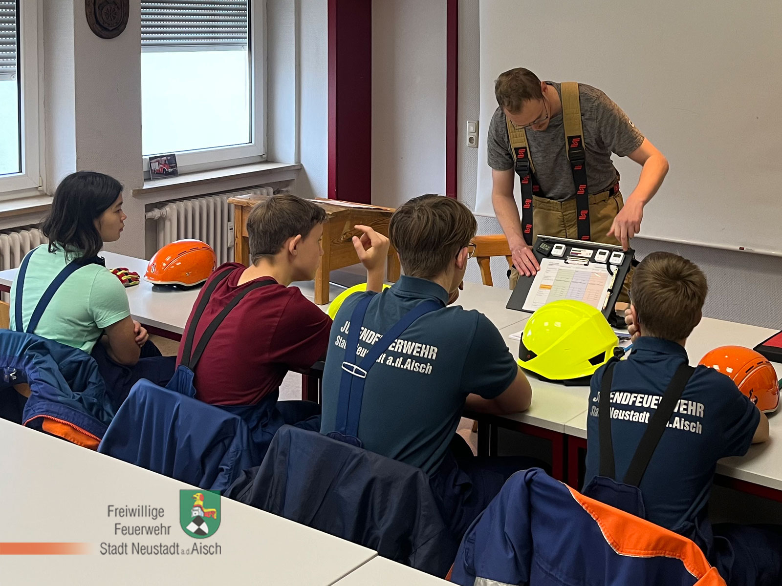 Zu Beginn setzten sich die Feuerwehranwärter intensiv mit den verschiedenen Brandklassen und dem korrekten Einsatz von Feuerlöschern auseinander. Dabei wurde auch darauf eingegangen, über welche Arten von Feuerlöschern die Feuerwehr Neustadt verfügt und auf welchen Fahrzeugen sie mitgeführt werden.