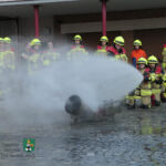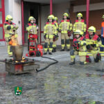 Die Übungslöschanlage (ÜLA) diente als „Zielbild“ für den zweiten Übungsabschnitt. Hier ging es um die Bedienung von Hohlstrahlrohren. An den von der ÜLA produzierten Flammen konnten die Feuerwehrleute die verschiedenen Einstellmöglichkeiten der Hohlstrahlrohre und deren Wirkungsweisen realitätsnah üben.