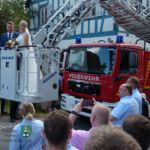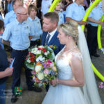 Schauerheim – Glücklich und strahlend zeigten sich am 25. Juni Feuerwehrmann Markus Wallmüller und seine Braut Christina, als sie nach ihrer kirchlichen Trauung das Schlauchspalier „ihrer Feuerwehr“ durchschritten.