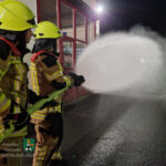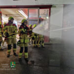 Als Zugabe hatte Markus Stenglein noch eine selbstgebaute sogenannte „Flashover-Box“ dabei. Mit dieser Konstruktion demonstrierte er den Übenden die Entstehung und den Ablauf eines Flashovers und die damit einhergehende Rauchentwicklung und Flammenbildung.