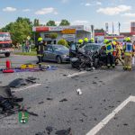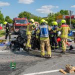 An der Unfallörtlichkeit zeigte sich folgende Lage: Drei Pkw, alle massiv unfallbeschädigt, standen im Einmündungsbereich der B 470 zur östlichen Gemeindezufahrt Diespecks. In einem Kleinwagen war der Fahrer in Folge der erheblichen Deformationen der Fahrzeugfront eingeklemmt. Die Einsatzkräfte der beiden Feuerwehren arbeiteten nach Rücksprache mit dem Rettungsdienst zeitgleich mit zwei Rettungsscheren, um das Dach für eine patientenschonende Rettung abzunehmen. Parallel war auch der Brandschutz sichergestellt worden.