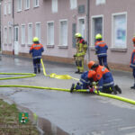 Im ersten Abschnitt der Übung befassten sich die Mädchen und Jungs gemeinsam mit ihren Jugendwarten mit dem sogenannten Löschaufbau (oder auch Löschangriff). Vom Setzen des Verteilers, dem Verlegen der Druckschläuche bis hin zur Vornahme des ersten, des zweiten und eines dritten C-Strahlrohres beherrschten die Jugendlichen stets „ihr Handwerk“.