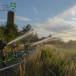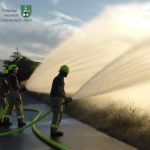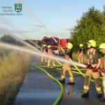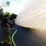 Das Ausbildungsthema „Wasserförderung über lange Schlauchstrecken“, wie es z.B. bei ausgedehnten Waldbränden unumgänglich ist, stand am 5. Juli auf dem Übungsplan.