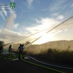 Die Wasserabgabe erfolgte mit vier Strahlrohren gleichzeitig (je zwei Hohlstrahlrohre der Größen B und C), mit welchen rund 1000 Liter Wasser pro Minuten abgegeben werden können. Um die Auswirkungen solcher Abgabemengen auf die Leistungsfähigkeit der Förderstrecke sowie der Tragkraftspritze aufzuzeigen, machten die Feuerwehrfrauen und -männer Tests mit nur einer B-Druckleitung von der Wasserentnahmestelle zum Löschfahrzeug und auch mit zwei B-Leitungen.