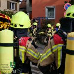 Der Angriffstrupp (AT) des ersten Löschgruppenfahrzeugs drang unter schwerem Atemschutz, ausgerüstet mit einem C-Strahlrohr, in die Wohnung vor. Parallel brachte ein weiterer Trupp den Hochleistungslüfter in Stellung, um für eine schnelle Entrauchung und somit für bessere Sichtverhältnisse für den AT zu sorgen. Zwei weitere Trupps, ebenfalls mit schwerem Atemschutz ausgerüstet, standen in Bereitschaft. Der Brand konnte zielgerichtet vom Angriffstrupp mit minimalem Wassereinsatz gelöscht und die Wohnung nahezu rauchfrei übergeben werden.
